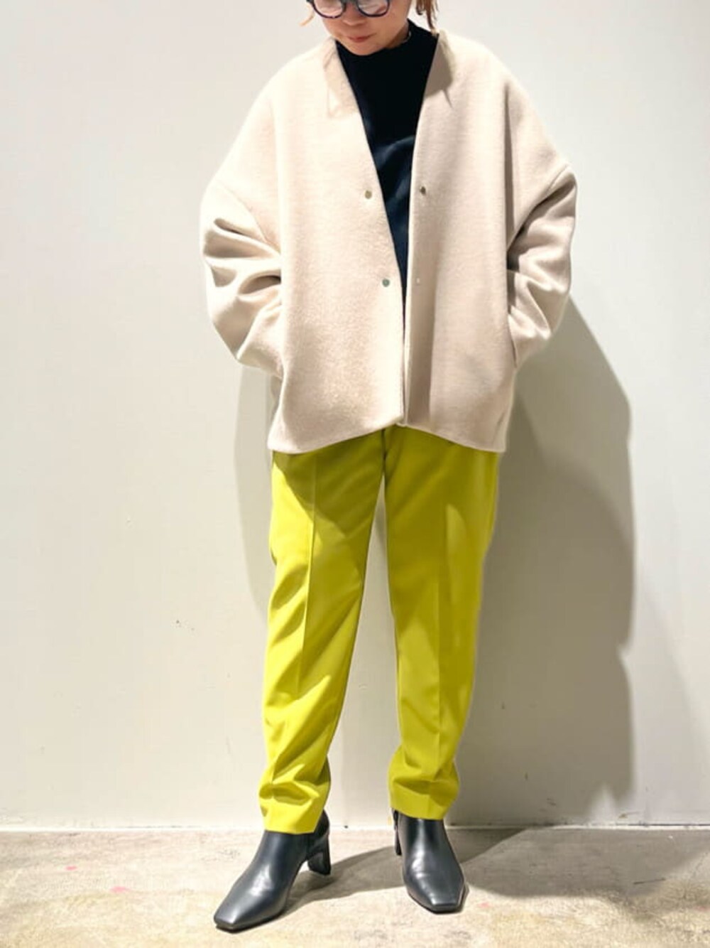 《冬の新定番ショートコートスタイリング》【コート】昨年大人気だったゆるっとシルエットのショートコート。ルーズなシルエットで中に分厚めのニットを着込んでも◎ショート丈ですがお尻が隠れるお丈なのでパンツスタイルやワンピースとも相性抜群。着用カラーのベージュはWEB限定色です。【トップス】ペプラムデザインで美シルエットが叶うニット。二の腕のラインが隠れるようにカーブのようなシルエットになっています◎【パンツ】リピート買い続出のテーパードパンツ。3サイズ展開と豊富なカラバリが特徴。ご自宅で洗えるお素材なのでデイリー使いにぴったり。155cm02サイズ着用。