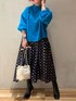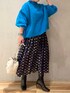 《秋のカラーニットスタイリング》【ニット】パキッとカラーがELENDEEKらしいニット。ゆったりとしたオーバーシルエットですが、とっても軽くて着心地抜群。分厚過ぎない生地なので着膨れせず抜け感のあるルーズさが大人らしい印象に。チクチクせず手触り柔らかなのもうれしいです◎【スカート】ジャガード素材のフレアスカート。着用したネイビーはモードな印象の柄がポイント。やや薄めの生地で広がり過ぎないフレアシルエット。ウエストもゴムが入っているのでストレスフリーでお召しいただけます◎【ブーツ】スクエアトゥブーツはどんなスタイリングにも合う万能アイテム。バーヒールは6.5cmで歩きやすく安定感も◎