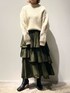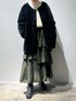 《冬のモードカラースタイリング》【コート】毎年大人気のボアコート。今年はクルーネックになりより合わせやすくなりました◎着膨れが心配なボアコートですが、ゆるっとしたシルエットと肩周りに毛足の短いボアを使っていることでコンパクトな印象に◎リバーシブルなので、寒い日にはボアを内側にして着るとより暖かく防寒もばっちり◎【ニット】ざっくりとした編み目のニットは軽くて暖か◎定番のケーブルニットは1枚あるとコーディネートの幅が広がります。【スカート】ランダムなプリーツとアシンメトリーなデザインがELENDEEKらしいスカート◎ベーシックなトップスを合わせるだけで大人なモードスタイルが完成します。落ち感のあるフレアシルエットなので広がりすぎないのがお気に入りポイントです◎