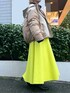 《リラックスモードコーデ》【アウター】中綿ダウン80%の防寒ばっちりアウター。ダウンは着たいけどカジュアル過ぎなのは苦手な方にオススメ◎お袖はナイロン素材、前身頃はスポンジ素材でドッキングしているのでカジュアル見えし過ぎないELENDEEKらしいアウター。裾が絞られているので風通しもなく、ボリュームにもメリハリが出てバランス◎暖かさとかわいさを兼ね備えたアウターです!【ニット】手触り柔らかなゆるニットはお丈も長過ぎずショートアウターとのバランスも抜群◎【スカート】たっぷりとしたフレアシルエットのスカート。履くだけで女性らしさがアップする主役スカート。パキッとカラーのイエローを合わせてモードスタイルに◎155cm02サイズ着用。