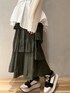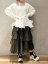 《モードカジュアルコーデ》 【ニット】 裾のフレアはシャツ生地を使用しており異素材感が楽しめる1枚☺️ゆったりめのサイズ感ですが切り替え部分が斜めになっているのでメリハリも◎フレア部分はアシンメトリーなのでフレアスカートやワイドパンツなどボリュームのあるボトムも合わせやすいのもうれしいです🤍 【スカート】 ランダムなプリーツとアシンメトリーなデザインがELENDEEKらしいスカート☺️大人なモードスタイルが完成します🤍落ち感のあるフレアシルエットなので広がりすぎないのがお気に入りポイントです◎ 【スニーカー】 アクセントになる厚底スニーカー。ソールは4.5cmですがとっても歩きやすくて履き心地抜群🤍サイズとカラーも豊富なのでお気に入りの一足が見つかるかと☺️