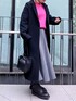 《大人の差し色スタイリング》 【アウター】「かっちりし過ぎずほどよくカジュアルなコートがほしい💭」そんな方にぴったりなチェスターコート。落ち感のあるショルダーとゆるっとした腕まわりで大人の抜け感☺️裾にむかって内側に入るコクーンシルエットが細見えの秘訣です。ウール100%の分厚過ぎないお素材なので重量感もなく身体に沿ってきれいなシルエットが完成します◎155cm02サイズ着用。ゆったりカジュアルに着たい小柄さんは02サイズでもお丈も長過ぎません🤍 【ニット】ビビットなピンクが目を惹くニット◎シンプルなクルーネックニット、どんなボトムにも合うので大活躍間違い無し☺️わたしは窮屈感が苦手ですが、このニットはぴったりし過ぎずほどよくルーズなシルエットでお気に入りです!ご自宅で洗えるウォッシャブル仕様なのもうれしい🤍 【スカート】たっぷりとしたフレアシルエットが女性らしいスカート。手触りは弾力のあるスポンジ素材で履き心地も柔らか🤍肉厚ですが軽い生地なので重さも気になりませんでした!155cm01サイズ着用。お丈約5cm変わります☺️