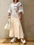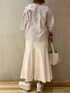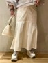 《モードフェミニンコーデ》 【ブラウス】 ELENDEEKの定番アイテム[フリルブラウス]甘くなりがちなフリルもアシンメトリーなデザインで大人っぽい印象に☺️お袖はほどよいボリューム感なので、捲って肌見せするのもオススメです🤍 【スカート】 ハリ感のある上品なマーメイドスカート☺️腰回りがスッキリしているのでトップスをアウトスタイルで着てももたつきません◎ウエストの後ろがゴムになっているので履き心地もらくらくストレスフリー。裏地がついているので透け感もなく安心です☺️ 【シューズ】 大人気の厚底スニーカーのNEWバージョンが登場☺️靴紐はアジャスタータイプなので解ける心配もなく着脱もらくらく◎片手で楽に履けるのでママさんにもオススメです!私は普段23.5cmで02サイズがぴったりでした!つま先がやや薄いタイプなので足の甲が高めでサイズが心配な方は1サイズ上げて中敷で調整していただくのもオススメです🤍