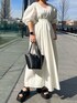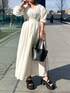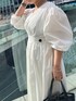 《ウエスト調整できるワンピース》 【ワンピース】 ウエストラインのくびれがきれいなワンピース◎お袖のふんわりボリューム×高めのウエスト位置でよりメリハリが出て女性らしい印象に🤍首まわりがやや広めなのでバストまわりや上半身が気になる方もスッキリ見えが叶います。ウエストはボタンホールで調整可能です☺️ブラック以外の薄いお色は裏地がついているので透け感もなく安心してお召しいただけます◎ご自宅で洗えるウォッシャブル仕様です! 【ネックレス】 シルバーとゴールドの配色ネックレス。細かなチェーンが上品な印象に🤍着用カラーはシルバー(フロントがゴールド)です! 【バッグ】 牛革を使用した高見えバッグ◎中は巾着になっているのでキュッと縛れば貴重品も安心。マチが広めなのでしっかりお荷物も入ります☺️ 【サンダル】 左右のデザインが違うアシンメトリーのサンダルは女性らしいスタイリングのアクセントに🤍6cmのソールは安定感があり履き心地抜群。インソールにはクッションが入っているので長時間のおでかけも安心◎普段23.5cmですが、足の甲が高いので38(24-24.5cm)でジャストでした!