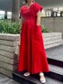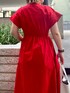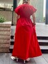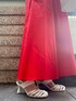 《夏の主役ワンピースコーデ》 【ワンピース】 着るだけで美シルエットが完成するワンピース◎高めのウエストマーク&広めの袖口で気になるお腹まわりと二の腕をカバー🤍ウエストの下の細かなギャザーでふんわり感が出ながらも甘すぎないオトナな印象に。着用カラーのレッドはパキッとした華やかな印象です☺️ご自宅で洗えるウォッシャブル仕様なのもうれしいポイント。155cm02サイズ着用でお丈はくるぶしが隠れるくらいです!スニーカーを合わせてカジュアルダウンなスタイリングもオススメ🤍 【ネックレス】 シルバーとゴールドの配色ネックレス。細かなチェーンが上品な印象に🤍着用カラーはシルバー(フロントがゴールド)です! 【バッグ】 牛革を使用した高見えバッグ◎中は巾着になっているのでキュッと縛れば貴重品も安心。マチが広めなのでしっかりお荷物も入ります☺️ 【サンダル】 キレイめに履けるグルカサンダル🤍つま先が隠れるデザインなので春先から夏まで長く活躍するのがうれしい☺️足の甲のバンドで安定感◎私は23.5cmで足の甲が高めなので38(24-24.5cm)がジャストでした✔︎