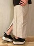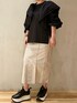 《フリルブラウスをカジュアルに◎》 【ブラウス】 ショルダーのフリルがポイントのブラウス。甘くなりがちなブラウスですが、コンパクトな身頃で大人な雰囲気に。お首元は詰まったデザインですが後ろのファスナーで脱ぎ着もらくらく!長袖ですが袖口にゴムが入っているので捲って着ると抜け感も◎ 【スカート】 きれいめ、モード、カジュアル、どのテイストにも合わせやすいタイトスカート。前後にスリットが入っているのでタイトシルエットですが足捌き◎窮屈感なく履けるのもうれしいポイント🤍ウエストのゴムの部分が広めなので着心地らくらく!155cm02サイズ着用。長めに着たい方は小柄さんでも02サイズをオススメします☺️ 【シューズ】 大人気の厚底スニーカーのNEWバージョンが登場☺️靴紐はアジャスタータイプなので解ける心配もなく着脱もらくらく◎片手で楽に履けるのでママさんにもオススメです!私は普段23.5cmで02サイズがぴったりでした!つま先がやや薄いタイプなので足の甲が高めでサイズが心配な方は1サイズ上げて中敷で調整していただくのもオススメです🤍