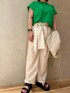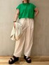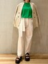 《リラックスカジュアルスタイル》 【カットソー】 ショルダーにタックが入ったカットソーは夏に大活躍間違いなし◎ゆったりとしたシルエットと薄手のお素材で着膨れ感なくきれいにお召しいただけます☺️ご自宅で洗えるウォッシャブル仕様!着用カラーのグリーンはWEB通販色です◎ 【ジャケット】 ベーシックなテーパードジャケット◎かっちりしすぎないようややゆとりのあるサイズ感です🤍薄手のお素材で裏地は半裏タイプなので着られるシーズンも長くデイリー使いにぴったり。今回はリラックス感のあるカットソーに合わせましたが、同シリーズのパンツと合わせてセットアップで着るのもオススメ◎ 【パンツ】 ウエストのリボンがポイントのパンツ。薄手の生地で夏にぴったり☺️裏地が付いていないので、インナーは同系色やペチパンツ合わせをオススメします(特に着用カラーのホワイト)155cm02サイズ着用。 【サンダル】 ふかふかな履き心地のスリッパサンダル◎まるでクッションの上を歩いているかのようなふかふかさで疲れ知らず✌️どんなスタイリングにも合わせやすいようあえてシンプルなデザイン、カラーになっています☺️厚底ですがとても軽いのも安心🤍普段23.5cmで足の甲が高めなので38(24-24.5cm)着用、バンド部分も柔らかいので痛くありませんでした☺️