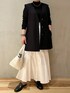 《おとなのモードスタイル》 【ジレ】 いつものスタイリングにプラスするだけでオシャレ度が高まるジレ◎長めのお丈なのですが、ストンと落ち感があるので長めのボトムとの相性抜群☺️パンツ、ワンピ合わせもオススメです! 【ニット】 インナーにぴったりのシアーリブニット◎ウールが入っているので冬〜春のレイヤードスタイルにオススメの1枚です🤍モードなブラックをチョイス✔︎ 【スカート】 ハリ感のある上品なマーメイドスカート。腰回りがスッキリしているのでトップスをアウトスタイルで着てももたつきません◎ウエストの後ろがゴムになっているので履き心地もらくらくストレスフリー。裏地がついているので透け感もなく安心です☺️ 【バッグ】 牛革を使用した高見えバッグ◎中は巾着になっているのでキュッと縛れば貴重品も安心。マチが広めなのでしっかりお荷物も入ります☺️ 【ネックレス】 シンプルなスタイリングに映えるボールチェーンネックレス。シルバーをチョイスしてモードな雰囲気に💐