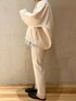 《春の本命アウターコーデ》 【アウター】 昨年大人気で即完売した丸いフォルムの春アウター◎ゆったりシルエットで小柄さんから長身さんまで幅広い方に愛されたアウターです!かっちりし過ぎずカジュアルにお召しいただけるシルエット。スカートはもちろん、パンツやワンピースとも相性抜群🤍155cmでお尻が隠れるお丈で安心。分厚めのインナーを着てもゆったり羽織れるアームの広さで季節の変わり目にぴったりな1枚です! 【ブラウス】 ELENDEEKらしいプリーツとアシンメトリーのデザインブラウス。前後2WAYで着られる着回し力抜群アイテムです◎お袖はシャーリングのゴムになっているので捲ってボリュームを出すのが好きです☺️お尻が隠れるフレアシルエットなのでテーパードパンツとの相性ばっちり!ご自宅で洗えるウォッシャブル仕様です。 【パンツ】 ELENDEEK定番のテーパードパンツ◎私はオンオフ季節問わず使えるライトグレーをチョイス☺️ゆったりめに履きたかったので155cmで02サイズ着用、フラットシューズでも裾上げ無しで履けるお丈でした🤍