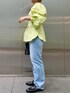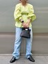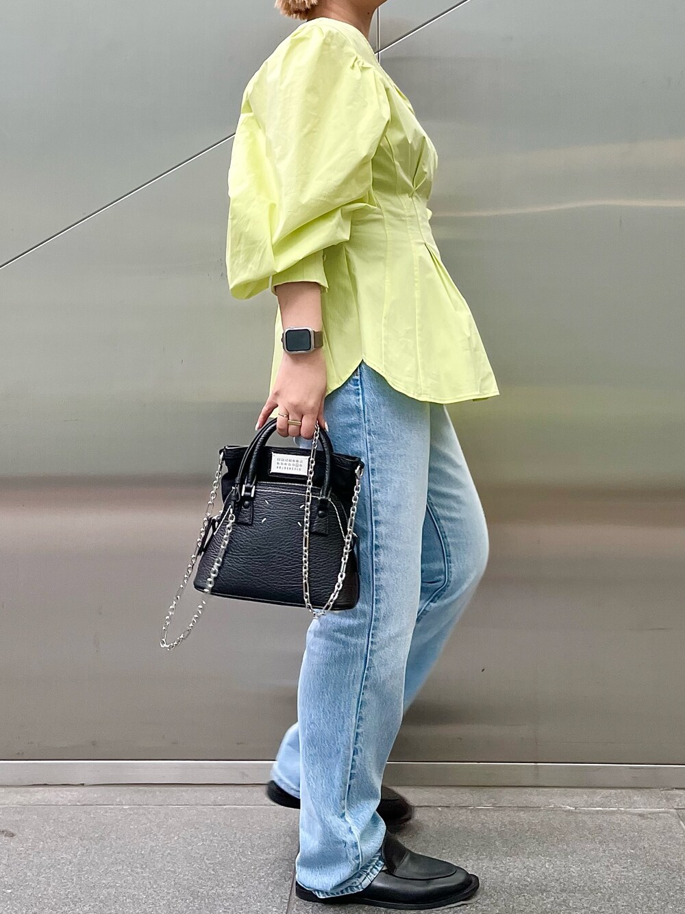 《カラーブラウスを大人カジュアルに◎》 【ブラウス】 目を惹く鮮やかなイエロー◎着るだけでウエストのくびれが出来る美シルエットなブラウスです☺️バスト下からのペプラムでお腹まわり、腰まわりをしっかりカバー!お首元はすっきりVネックでほどよい抜け感。今回はデニムを合わせて大人カジュアルに着ました🤍テーパードパンツやジャケットを合わせてかっちりお仕事スタイルにもお使いいただける優秀ブラウスです!ご自宅で洗えるウォッシャブル仕様◎