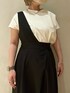 《大人のモノトーンカジュアルコーデ》 【ジャンパースカート】 左右のアシンメトリーがモードなジャンパースカート◎細い紐(左側)はお取り外しできるので、ワンショルダーにして着てもかわいい☺️インナーを変えれば季節問わずオールシーズンお召しいただけます!スカート部分のタックも斜めに入っているので甘くなりすぎず大人な印象に。155cm02サイズ着用。ややコンパクトなサイズなので華奢な方は01、厚めのインナーを合わされる方やウエストまわりをゆったり着たい方は02サイズをお選びいただくと安心です!ご自宅で洗えるウォッシャブル仕様です。 【トップス】 ショルダー部分にタックが入ったデザインカットソー。シンプルですがワザありの1枚です◎アームホールにはマチがついているので腕を上げたときもインナーが見えすぎることなく安心☺️裾はカーブになっているのでアウトスタイルでお尻まわりをうまくカバーできるデザイン◎ボトムを選ばないので、カジュアルからきれいめまで幅広く対応できちゃいます!ご自宅で洗えるウォッシャブル仕様です。 【ネックレス】 シンプルなスタイリングに映えるボールチェーンネックレス。シルバーをチョイスしてモードな雰囲気に💐