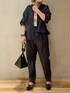 《もうコーデに悩まない!セットアップ》 【トップス】 ふんわりとしたお袖がポイントのトップスは、なんとブルゾン、ブラウスとしても着られる2WAYタイプ◎今回はブルゾンとして着用しています!前後を逆にしてファスナーを閉めればブラウスで着られるので着回し力抜群の1枚です!ワンピに羽織ってもかわいい◎デニム風のお素材ですが、とってもやわらかく着心地抜群!ご自宅で洗えるウォッシャブル仕様なのもうれしい🤍同シリーズのパンツを合わせてセットアップで着用しました! 【パンツ】 ハイウエストのテーパードパンツはオンオフ共に大活躍間違いなし◎155cm02サイズ着用、ゆったりめに履けるのでかっちりしすぎないデザインです☺️ラフな大人カジュアルに着られるインディゴ着用。このパンツもご自宅で洗えちゃうのでデイリー使いにオススメ! 【バッグ】 スタイリングのアクセントになるトライアングル型バッグ。中は巾着タイプになっており、口もしっかり閉まるので貴重品も安心☺️付属の紐でショルダーにもなる2WAYタイプです🤍 【サンダル】 キレイめに履けるグルカサンダル🤍つま先が隠れるデザインなので春先から夏まで長く活躍するのがうれしい☺️足の甲のバンドで安定感◎私は23.5cmで足の甲が高めなので38(24-24.5cm)がジャストでした✔︎
