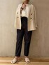 《オトナ女子のラフなジャケットコーデ》 【ジャケット】 ベーシックなセミダブルテーラードジャケット◎かっちりしすぎないようややゆとりのあるサイズ感です🤍薄手のお素材で裏地は半裏タイプなので、季節問わず長くお召しいただけます!今回はラフなカジュアル感のあるカットソー×デニム風パンツと合わせました☺️同シリーズのパンツと合わせてセットアップで着るのもオススメ◎155cm01サイズ着用。 【トップス】 ショルダー部分にタックが入ったデザインカットソー。シンプルですがワザありの1枚です◎アームホールにはマチがついているので腕を上げたときもインナーが見えすぎることなく安心☺️裾はカーブになっているのでアウトスタイルでお尻まわりをうまくカバーできるデザイン◎ボトムを選ばないので、カジュアルからきれいめまで幅広く対応できちゃいます!ご自宅で洗えるウォッシャブル仕様です。 【パンツ】 ハイウエストのテーパードパンツはオンオフ共に大活躍間違いなし◎155cm02サイズ着用、ゆったりめに履けるのでかっちりしすぎないデザインです☺️ラフな大人カジュアルに着られるインディゴ着用。このパンツもご自宅で洗えちゃうのでデイリー使いにオススメ! 【サンダル】 セレクトアイテム:Mollini (モリーニ) のサンダル。フロントの編み素材がコーデのアクセントに◎ヒールは8cm。23.5cmで37size着用です!