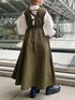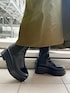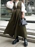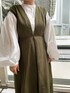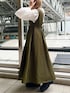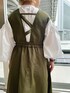 《オトナ女子にオススメコーデ》 【ジャンパースカート】 光沢のあるポリエステル素材がめずらしい上品見えするジャンパースカート。おしゃれ見えするカーキはモードカジュアルな印象です!後ろのウエストゴムで着心地らくらく◎ウエストのシェイプとフレアシルエットのメリハリ抜群。バックスタイルのアシンメトリーなデザインもELENDEEKならではで大好き!155cm02サイズ着用。ご自宅で洗えるウォッシャブル仕様です! 【ブラウス】 たっぷりとしたお袖のボリュームがかわいいブラウス。スタンドカラーなので、ジャンパースカートのインナーにしてもバランスばっちり✨お袖はしっかり長袖タイプ。袖口がゴムなので捲って着ても落ちてこず、抜け感が出てオススメ◎コットンとポリエステルのお素材なので、シワになりにくくアイロン要らず。ご自宅で洗えるウォッシャブル仕様です! 【ブーツ】 厚底のサイドゴアブーツ。ソールは約6cmですが歩きやすく履き心地抜群♡牛革なので履けば履くほど馴染みより履きやすくなります!サンプルの為38サイズ(24-24.5cm)着用。23.5cmの私が履くとゆとりがあったので、普段通りのサイズでお選びいただくと安心です◎