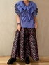 《オトナエレガンスコーデ》 【トップス】 フリルとプリーツがあしらわれた主役ブラウス。甘くなりがちなフリルも高密度な素材でオトナっぽく着られる1枚☺️落ち着いたくすみブルーに一目惚れ。華やかなのに”やりすぎ感”が出ないのがうれしい♡わたしはフレアスカートを合わせましたが、デニムやタイトスカートとも相性抜群です!ご自宅で洗えるウォッシャブル仕様。 【スカート】 カラーによって柄が違うジャガードスカート。わたしが着用しているのは”グリーン”です!ベースの深いグリーンにピンクの花柄が映える1枚。ウエストの後ろがゴムになっているので履き心地もらくらく。リピーターさまも多くいらっしゃるELENDEEKの美シルエットフレアスカート、ぜひお試しくださいませ✨155cm02サイズ着用。
