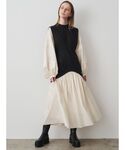 《5/26 INSTA LIVE紹介コーデ》 【ワンピース】 一見ベストを着ているように見えますが、実は1枚のワンピースなんです♡ボリュームスリーブ×ウエストシェイプのバランスが黄金比✨INSTA LIVEでご紹介したときも着痩せしてる!と大絶賛でした♡黒と白の配色がモードな印象のMIXを着用。着るだけでオシャレ見えが叶います!裏地も付いているので透け感もなく安心!155cm02サイズ着用です。 【ブーツ】 厚底のサイドゴアブーツ。ソールは約6cmですが歩きやすく履き心地抜群♡牛革なので履けば履くほど馴染みより履きやすくなります!サンプルの為38サイズ(24-24.5cm)着用。23.5cmの私が履くとゆとりがあったので、普段通りのサイズでお選びいただくと安心です◎