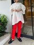《着るだけで体型カバー◎》 【チュニック】 ELENDEEKから毎シーズン登場する大人気チュニック。この秋ももちろんございます!今年もゆったり着られるシルエット。裾がややアシンメトリーになっているので抜け感も◎お腹まわり、腰まわりをさり気なくカバーしてくれるので、パンツスタイルも安心して着られる1枚です! 【パンツ】 こちらもELENDEEK定番のテーパードパンツ。夏仕様のポリエステル100%素材。裏地無しのさらりと涼しく着られるパンツです◯シワになりにくく、ご自宅で洗えるのでお手入れもらくらく。155cm02サイズ着用。フラットシューズでも安心のお丈でした◎
