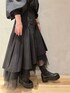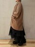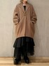 《10/16 INSTA LIVE紹介コーデ》 【アウター】 ゆったりとしたオーバーサイズのチェスターコート。ミドル丈が周りと差をつける主役アウター◯ウール100%で暖かさ抜群。毛足も長くないので毛玉にもなりにくく、高級感があるお素材です!155cm02サイズ着用。もともとゆったりサイズで抜け感のあるシルエットなので、150cm台の方は01サイズをお選びいただくと安心です! 【ブラウス】 柔らかなナイロン素材の2WAYブラウス。ショルダー部分にゴムが入っているのでオフショルで着るのもオススメ。クシャッとしたシワ加工が施されており、ほどよく抜け感が出るお素材。同シリーズのスカートと合わせてセットアップとして着用しました◎ 【スカート】 ナイロン×チュールの異素材が組み合わさったモードなスカート。曲線的なウエストラインがとってもきれいでインスタイル、アウトスタイルどちらもばっちり◎カットソーやゆったりニットを合わせてカジュアルダウンに着るのもかわいい!155cm02サイズ着用。