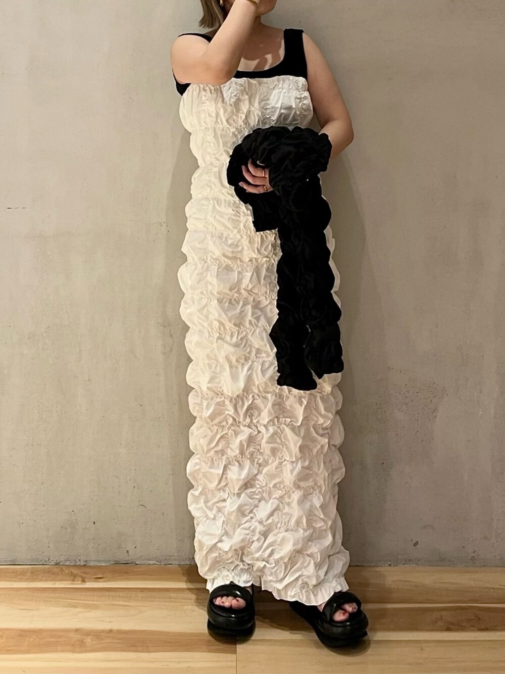 haruka(ELENDEEK)のワンピース「イージーブロックワンピース」を使ったコーディネート