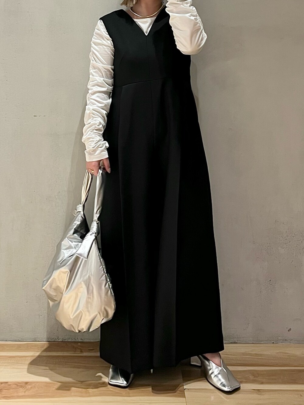 《今すぐ着られる春服》 【コンビネゾン】 1枚でおしゃれに決まるコンビネゾンはスタイリングの強い味方に。ウエスト位置が高く、着るだけでスタイルアップが叶います◎バックスタイルも大きくVに開いているのでほどよく肌見せ抜け感も。ポリエステル素材でシワになりにくく、着心地も抜群です。155cm01サイズ着用。 【カットソー】 お袖のシャーリングがポイントのカットソー。レイヤードスタイルにぴったりなアイテムです◎身頃のサイドにもシャーリングが施されているので1枚で着てもかわいい!光沢のあるお素材がモードな印象に。伸縮性もあるので窮屈感が苦手な方にもオススメです。ご自宅で洗えるウォッシャブル仕様。 【シューズ】 メタリックカラーが今年らしいミュールはつま先が隠れているので春先から履けるうれしいシューズ◎わたしは甲高ですがカッティングが深めなので38サイズ着用で痛くありませんでした!ふわふわのクッションで長時間のおでかけも安心です。