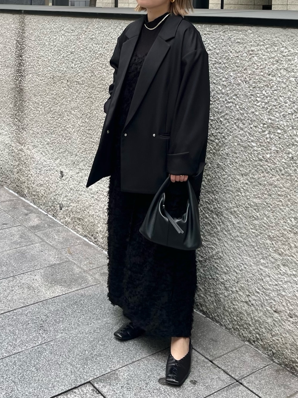 《ジャケット着回し!トレンドver》 【ジャケット】 ゆったり抜け感のあるシルエットのテーラードジャケット。かっちりし過ぎないほどよいラフさがかわいい◎ポリエステル素材なのでしわになりにくく、シーンや季節問わずお召しいただけます。バックスタイルはクロスデザインがアクセントでモードな印象に。 【ワンピース】 トレンドのキャミワンピースをELENDEEKらしいお素材でご用意しました◯着用カラーのブラックとオフホワイトは毛足のあるカットジャガード素材、グレーはぽこぽこのふくれ生地でお色によって雰囲気がかわります。アシンメトリーになった華奢な肩のストラップとバックスタイルがポイント。ほどよいスリットで大人な印象に着られます◯155cm01サイズ着用。 【ニット】 レイヤードにぴったりなシアーニット。柔らかな手触りとほどよいシアー感がとってもおしゃれ◎ウール混なので季節の変わり目に重宝するアイテムです。カラーも豊富にご用意ございますのでお好きなカラーが見つかるはず!ご自宅で洗えるウォッシャブル仕様です。