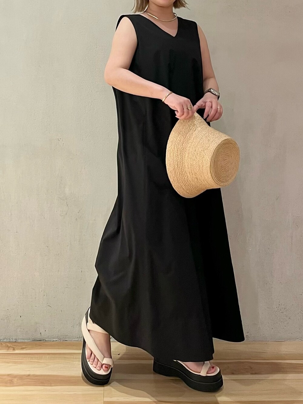 《撥水加工素材のらくらくワンピ》 【ワンピース】 ⚫︎撥水加工 デイリーから水際のアクティブなおでかけまで幅広く活躍するテントワンピース。軽くてさらりとしたお素材なので気負わず1枚で着られる着心地の良さ。バックスタイルはゆったり空いたデザイン。インナーにバッククロスキャミをレイヤードするのもオススメ◎155cm/02サイズ着用。 【キャミソール】 ⚫︎UV カップ付きのキャミソールはインナーとして大活躍間違い無し。シンプルですがバックスタイルのクロスデザインがポイント。