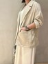《2色買いしたジャケットコーデ》 【ジャケット】 リネンタッチの薄手でやわらかなテーラードジャケット。カーディガン感覚でサッと羽織れる1枚です◎ワンピと合わせても良し、ビスチェやタンクを入れてヘルシーに着てもかわいいです!ご自宅で洗えるウォッシャブル仕様。わたしはベージュとブラックの2色購入しました♡ 【ワンピース】 シンプルなセンタースリットワンピース。光沢のあるとろみのお素材が女性らしい印象に。着用カラーのオフホワイトはきれいめなおでかけやご予定にもばっちり。155cm01サイズ着用。お丈が長めなので160cm以下の方は01サイズがオススメです!ご自宅で洗えるウォッシャブル仕様。