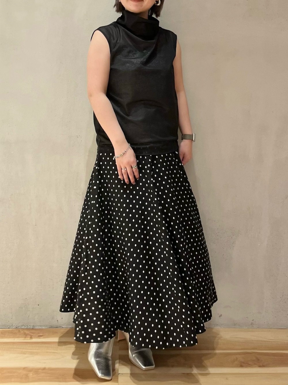 《AW第一弾ご予約開始》 【トップス】 •シアートップス×キャミソールSET。 •バックの首元のボタンがポイント。 •ワンピースとのレイヤードスタイルもオススメ。 【スカート】 •ハイウエストのフレアスカート。 •同素材のキャミソールとのセットアップ着用もオススメ。 •155cm02サイズ着用。 •ご自宅で洗えるウォッシャブル仕様。 【シューズ】 •足元をトレンドのメタリックにするだけでおしゃれ度UP。 •かかとを織り込んでサンダルのように履ける2WAY仕様。 •柔らかなお素材で履き心地◎ •普段24.0cmサイズ(甲高•幅広)で38サイズがジャスト。