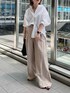 《シャツ×ワイドパンツコーデ》 【シャツ】 バックスタイルにボリュームを持たせたシャツは、羽織るだけでラフスタイルが完成◎後ろのお丈が長めなのでパンツを合わせてもお尻が隠れて安心。シワになりにくく、ご自宅で洗えるウォッシャブル仕様なのもうれしいポイント! 【パンツ】 センタープレスがきれいめな印象のツータックワイドパンツ。同素材の細ベルトつきでインスタイルでもスタイリングのアクセントに◎ストレッチ性もあるので履き心地も抜群。155cm02サイズ着用。