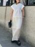 《品川5月のリアルバイコーデ》 【トップス】 毎年買い足すわたしの夏の定番アイテム◎身体のラインを拾わないシルエットと二の腕カット効果抜群。ゆったりしたオフネックなので暑さも感じず1枚でさらりと着られます!おうちで洗えるのもうれしいポイント。 【スカート】 ホワイトコーデがしたくてリアルバイしたスカート。オフホワイトは膝までの裏地がついていて膝下のほどよい透け感◎ツヤ感のあるお素材で甘すぎず抜け感が出るのがお気に入りです!155cm02サイズ着用。 【サンダル】 ボリューム感のあるサンダルは軽くて履き心地抜群。幅広•足の甲高めで普段23.5-24.0cmを着用していますが、37サイズだとジャスト、38サイズでややゆとりをもって履けました◎甲の部分とソールにクッション性があり痛くならずたくさん歩くおでかけにも安心して履けるサンダルです!