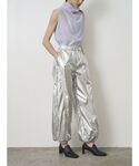 《今すぐ着られる新作コーデ》 【トップス】 夏に重宝するカットソー。一見シンプルに見えますが、バックスタイルがポイント。シャツ素材をドッキングしたモードなデザイン◎お首元や脇もほどよく詰まっているのでインナーの心配もなし。ご自宅で洗えるウォッシャブル仕様。 【パンツ】 トレンドのメタリックパンツ。ウエストは総ゴム+ドロスト付きなのでご自身の身体や合わせるアイテムによって調節可能◎とってもらくちんです!裾にもドロストがついているので、写真のように絞って履くとよりすっきり見え。絞らずにストレートで履いてもかわいいです◎フリーサイズ、ご自宅で洗えるウォッシャブル仕様。