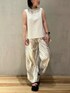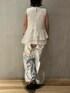 《今すぐ着られる新作コーデ》 【トップス】 夏に重宝するカットソー。一見シンプルに見えますが、バックスタイルがポイント。シャツ素材をドッキングしたモードなデザイン◎お首元や脇もほどよく詰まっているのでインナーの心配もなし。ご自宅で洗えるウォッシャブル仕様。 【パンツ】 トレンドのメタリックパンツ。ウエストは総ゴム+ドロスト付きなのでご自身の身体や合わせるアイテムによって調節可能◎とってもらくちんです!裾にもドロストがついているので、写真のように絞って履くとよりすっきり見え。絞らずにストレートで履いてもかわいいです◎フリーサイズ、ご自宅で洗えるウォッシャブル仕様。