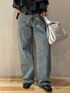 《大人のデニムコーデ》 【トップス】 インナーのキャミソールとのセット販売。やや透け感ありでブラックでも重たくなりません。前ボタンで着脱かんたん◎ご自宅で洗濯可能。 【デニム】 ワイドストレートシルエットの大人デニム。ヴィンテージ感のあるブリーチ加工でカジュアルになりすぎません◎腰まわりはややコンパクトなデザインなので膨張せずすっきり見えが叶います。155cm03サイズ着用。