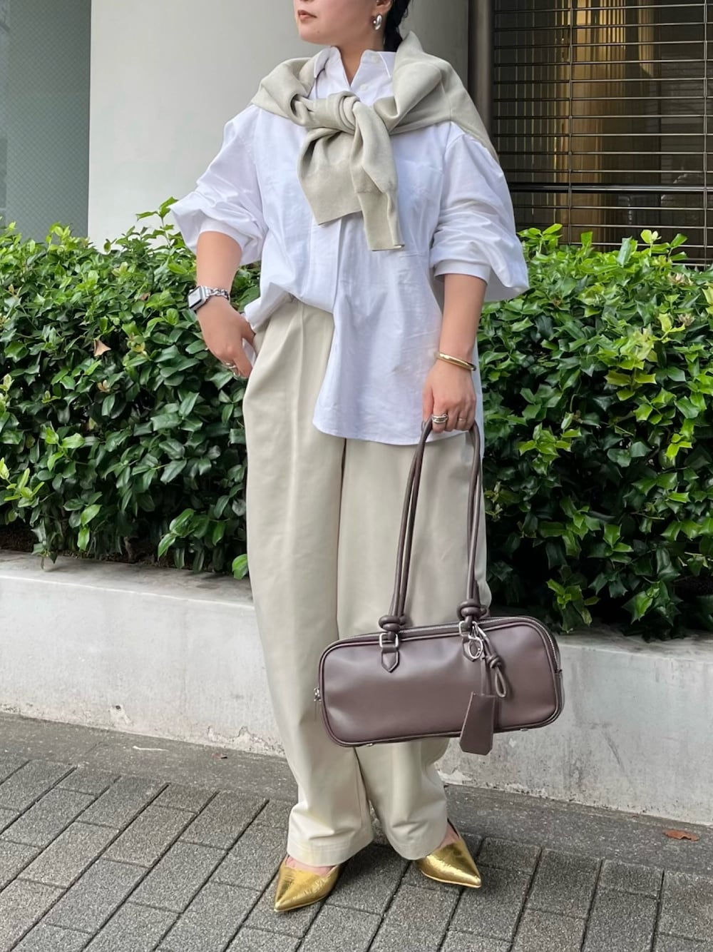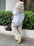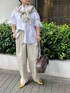 2025 spring & summer予約開始 【シャツ】 オーバーサイズの襟付きシャツ。コットン100%なのでかっちりし過ぎずラフに着られる1枚。羽織りとして使っても◎ 【カーディガン】 さりげないメタリックな風合いのカーディガンは肩掛けにしてもかわいい! 【パンツ】 ハリ感のあるチノ素材のパンツ。バレルシルエットで立体感があり、抜け感のあるスタイリングにぴったり◎155cm02サイズ着用。 【バッグ】 トレンドのボストンバッグはスタイリングのアクセントになるブラウンをチョイス。荷物もしっかり入るサイズ感。チャームむ付けられるカラビナ付きです!