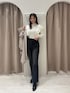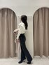 【履くだけで美脚になれるパンツ】 マーキュリーでは珍しいデニムパンツ きれいめな商品が多いからこそ作れる美脚パンツです ハイウエストで女性らしいさも残しつつ、裾はワイドに あえてラッフルニットを合わせることでカジュアルになりすぎません またロング丈のトレンチコートを合わせることで縦ラインがしっかり作れるので、脚長効果が増し、さらにスタイルアップ♡