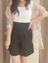 トレンドのショートパンツで美脚コーデ♡【シャツ】162cmでお尻まですっぽり隠れる長さです。ほんのり柄も入っており、柄×柄合わせもおすすめ。さらっとしてますので、1枚羽織っても暑くないです【トップス】スクエアネックがポイントのニット。短すぎずしっかり丈はありますが、インしてもごわつかないです。またTo/シリーズなので、生地も良く柔らかい肌触りです。【パンツ】Fサイズで膝上10cmほど。生地はしっかりしてますが、インナーのラインは響きにくいです。【サンダル】定番の神サンダル。クリア部分はしっかり足にフィットするので脱げやすさも無く、厚底×ショート丈で美脚コーデ間違いなし。