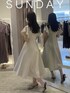 噂の"美シルエット"でモテデート♡【ワンピース】インスタで話題の"美シルエット"ワンピース。一見シンプルですが着るとシルエットがきれいすぎる1枚。ハイゲージなのでさらっとした肌触りと白でも透けにくいです☺︎丈が少し短めなので150cm未満の方でもSサイズは長すぎず◎足元を黒やベージュのエナメル素材のパンプスに変えるとグッと上品さも増します【サンダル】つま先のクッションが柔らかいサンダル。変形ヒールですが長時間歩いても疲れにくく、お出かけにぴったり。横幅は少し広めなので、25cmの靴を履かれる方でも、店舗で履いてくださってます。【バッグ】マチがしっかりしてるのでペットボトルも入ります。取手部分を一括りし短く持つのもお洒落見え♡