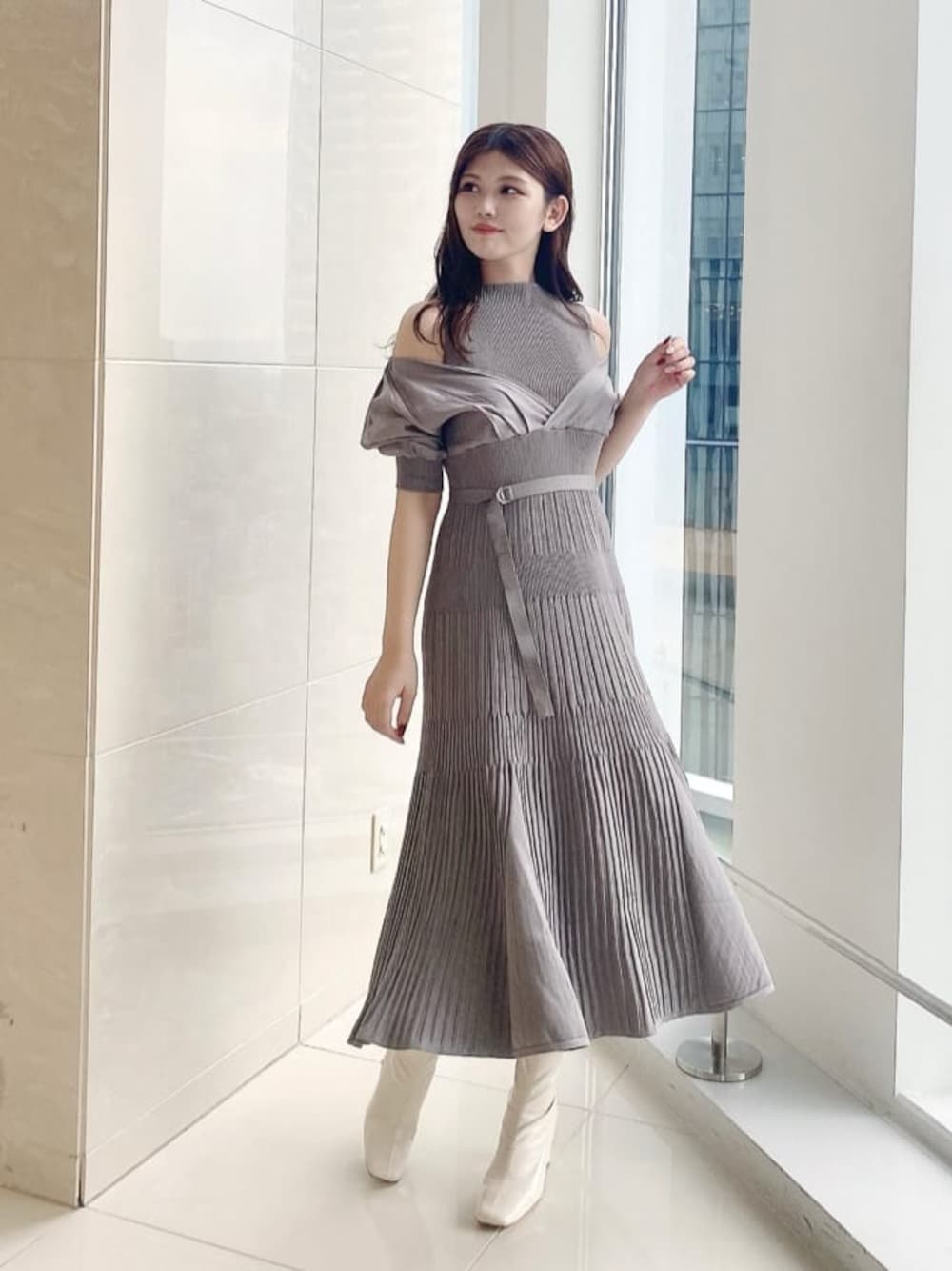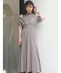 髙橋広果(MERCURYDUO)のワンピース「異素材ドッキングフレアニットワンピース」を使ったコーディネート