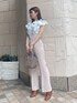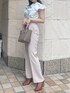 甘さ20%、フェミニン女子のパンツコーデ♡【トップス】フリルはボリュームが出すぎず、程よい甘さなのでカジュアルさんにも着やすい1枚☺︎通勤服やデート服、、様々なシーンで使えます♪インナーはベアトップなどレースインナーがおすすめです【パンツ】センターライン効果で美脚見え間違えなし♡!ウエストもゴムなので程よい締め付け感です。インナーのラインは響きにくいのですが、ガードル等履くとより安心です♡【サボ】着脱の楽さが魅力のサボ。7cm近くありますが、太めのヒールなので安定感抜群。春先でも使えるので本格的なブーツの季節まで1足あると便利です【バッグ】ペットボトル、お財布、ポーチなど、、見た目以上に容量抜群✨!!お仕事にもプライベートにも使える優秀さもあり、これぞ高見えバッグ♡