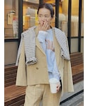 〈セットアップコーデ♡〉普段使いもしやすいUngridのジャケット×パンツのセットアップ。ダブルジャケットできっちりさもありながら、麻が入っており、フシのある生地感がラフさを出してくれるので、合わせ次第でカジュアルからちょっとしたオケージョンコーデまで、ご着用いただけます◎【ジャケット】ビックシルエットでルーズなサイズ感♡細身のジャケットは普段使いしにくいので、このルーズさが大切なポイント。生地はしっかりしていて、裏地もついている為、長い目で見ていただけます。【カットソー】トレンドのメッシュ編みのトップス♡伸縮性はないですが、編み目は粗くなく、柔らかい素材なので肌触りは優しいです!お袖は眺めのお造りになるので、くしゃっと手首で溜めて着こなしていただくのが可愛いです◎左側のみにサイドスリットが入っていて、155cmの私で腰骨より上の位置まで深めに入っています。また、アイボリーは肌馴染みが良く、メッシュや肌見せに抵抗がある方でも取り入れやすい一枚です♡ 【インナー】毎年大人気のランダムテレコタンクトップ。インナーとして使っていただくことが多いですが、見えてもかわいいインナーです◎素材もしっかりしていて、くたっと見えず、安心感抜群です♪【パンツ】ルーズなサイジングのボトムス。麻が入っている素材ならではの風合いと、アイロン掛け不要な“くたっ”とした素材感がこなれ感が出て可愛いです♡リラックスなムードでも着ていただけるのが、Ungridならではのパンツです。