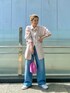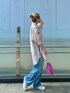 【春の休日お散歩コーデ♡】今季注目のカラーアイテムで、特に人気抜群のピンク!普段あまりピンク系を着ない方でも、挑戦しやすいカラーコーデです♡【shirt】一眼見た瞬間"かわいい!"と一目惚れしたストライプシャツ。サイドのスリットはもちろんお洒落ですが、お袖のカフスが長く、スリットが入っているようなデザインで、ボタンの位置さえもお洒落な一枚!ルーズなサイジングですが、サイドの大胆な深めのスリットデザインで、小柄な方でもバランス良くご着用いただけます!お袖が長く、捲らないと手はすっぽり隠れるくらいの長さ。写真のように肘辺りまで、上げていただくとよりスッキリ来ていただけます♪生地はさらっと気持ちよく、敏感肌の私にはとっても嬉しく、ノンストレスです♡【denim】昨年買いそびれてしまい待ち侘びていたデニム♡オーガニックコットンで柔らかく、デニムなのにデニムじゃないような履き心地!例えるなら…パジャマを履いているような気分になるくらいです♡♡♡155cmの私だとフラットシューズでは引きずってしまいますが、ヒールや少しソールのあるシューズなら◎ここまでずるっと可愛いデニムは他で出逢えないです!【bag】廃棄されてしまう予定のブタ革を使用した巾着バッグ。少しの傷や変色部分もそのまま使用しています!鮮やかなカラーのバッグで、スタイリング映え間違いなしです♡他のカラー展開も可愛いので是非ご覧になってください!