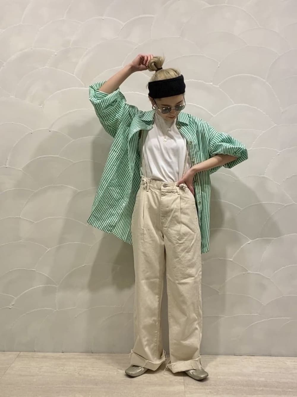 【スポーティーコーデ♡】 人気のストライプシャツを敢えてスポーティーに!他の人と被りにくいコーデです♪【シャツ】探し求めていたサイズ感のストライプシャツ♡155cmの私で、ヒップラインはすっぽりなサイズ感です。ストライプシャツなのに、ルーズさがあるので、キチッとなりすぎず、カジュアルテイストがお好きな方にも私服で使いやすいアイテム。お袖のたぽっとしたシルエットが可愛さ抜群で、メンズっぽくならずに女性らしく御着用いただけるポイントです♪【ノースリーブ】オーガニックコットンを使用した生地なので、着心地が気持ちよい一枚。形もシンプルな為、デイリー使いにもバッチリ◎体のラインを拾わないので、小柄さんはSサイズがおすすめです。【デニム】昨年も大人気だったストラップデニムの新色を着用してみました♡生地が柔らかくて、ノンストレスな一本。「①ストラップを付けて②ストラップを肩から外して垂らす③ストラップを取り外してシンプルなデニムとして」という3つの着方もできちゃいます◎丈は長めのサイズ感で、155cmの私は一回ロールアップして履いてみました!