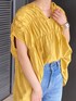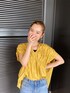 〈デイリーからアクティブなお出かけに♡差をつけられるブラウスコーデ♪〉肌馴染みの良いイエローのギャザーブラウスをブルーデニムとスニーカー合わせでカジュアルダウンに。ブラウス一枚でおしゃれ見え間違いなしなので、デイリーには勿論、お出かけなどのアクティブな日にも…♡【ブラウス】ギャザーがポイントのノースリブラウス。生地はリネン混の為、夏にぴったりで涼しげにご着用いただけます◎ゆったりとしたサイジングで、二の腕周りも隠れるデザイン♡「夏は暑いけど、腕をあまり出したくない…」というお客様にも、『普通のTシャツのように二の腕をカバーしてくれる!』と好評のノースリブラウスです!(脇部分が空いている為、キャミソール等インナー必須です)155cmの私で、ヒップがすっぽり隠れる長さです!デニムスタイルはもちろん、マーメードスカート等もおすすめです♪ 【インナー】店舗では即完売してしまったパット付きスクエアキャミソール。鎖骨下までしっかり生地がある為、かがんだ時でも安心です♪肩の紐も華奢なお作りなので、インナーとして見えても気になりにくく、女性らしい印象になります。カップ付きなので、コーデを組む時にインナーを気にする必要がないので、これさえ着ていれば楽ちんです♪【デニム】神シルエットで、スタッフからもお客様からも大人気のデニム♡ストレートが欲しいけど、今まで出会ったデニムは細すぎたり太すぎたり…。そんな方に一度は履いて頂きたいデニムです!綿100%ですが、ストレッチが入っているように感じる履き心地。made in JAPANならではの履きやすさで、買ってよかったと思っていただける自信しかないデニムです!♡
