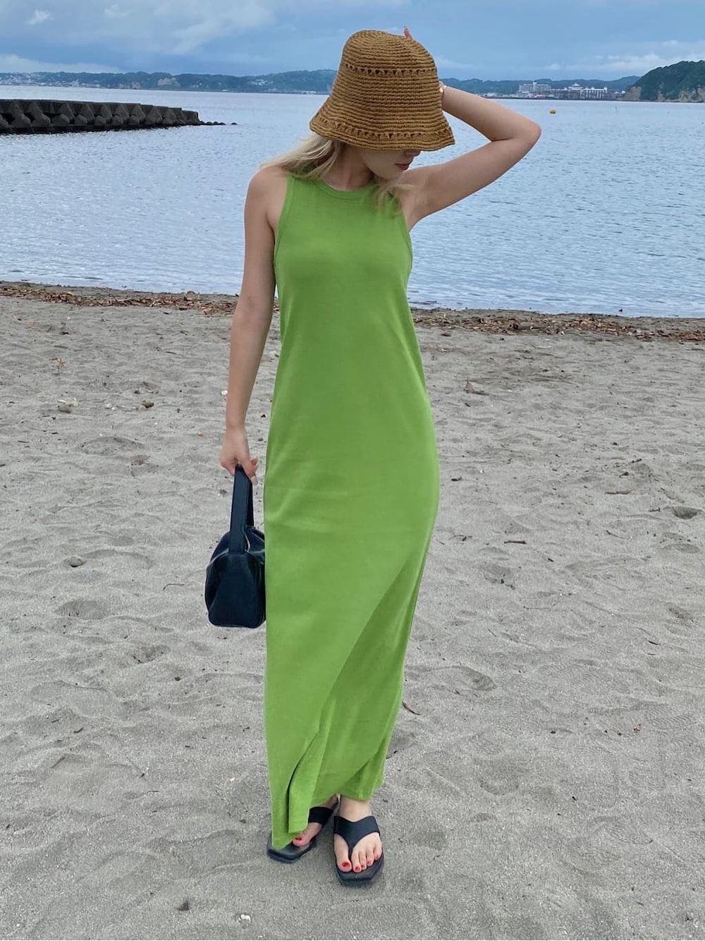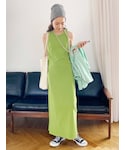 【カラーワンピコーデ♡】トレンドの"カラー"を、ラクに一枚で取り入れられるワンピ♪〈ワンピース〉・綺麗なIラインシルエットですが、身体のラインを拾いすぎません・155cmの私でマキシ丈・伸縮性もあり、後ろにスリットが入っている為、歩きやすくとても楽ちん♪・腰回りが気になる骨格ウェーブさんは、シャツやTシャツ、スウェットと重ね着していただくのもおすすめ♡