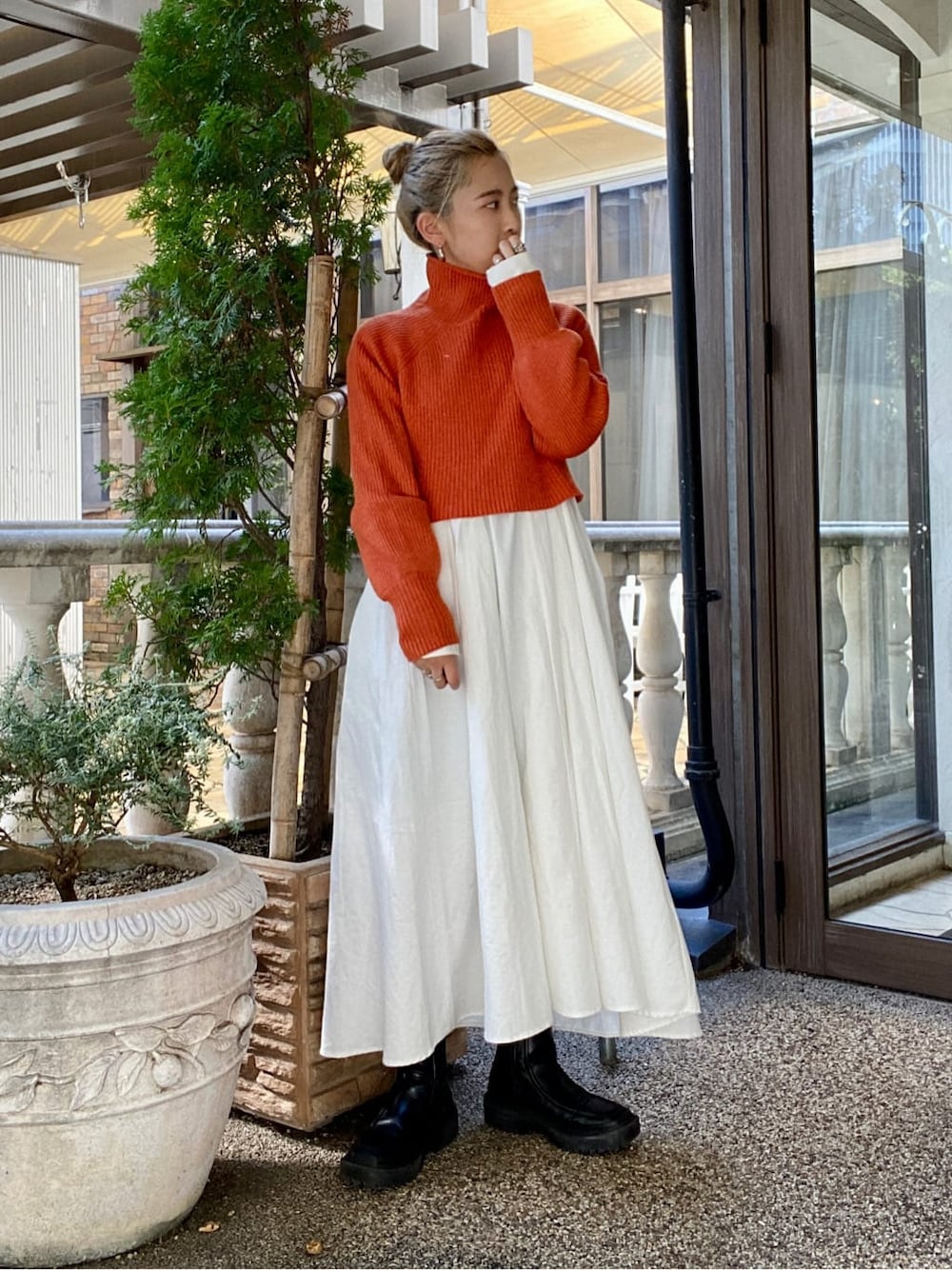 秋本すずか(Ungrid)のワンピース「バックリボンニットセットワンピース」を使ったコーディネート
