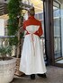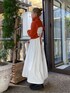 〈ニットセットワンピース着回しコーデ①〉【ワンピース】・ニットとワンピースのセットアイテム。別々でも着られる◎・ワンピースはウエスト部分にタックを施し、フレアシルエットで、1枚でもきれいめに着て頂けるデザイン。・ニットはショート丈でワンピースと合わせても、スタイル良く着られます♡・ワンピースは155cmの私がフラットシューズで合わせても、足首が見えるほどの長さ。