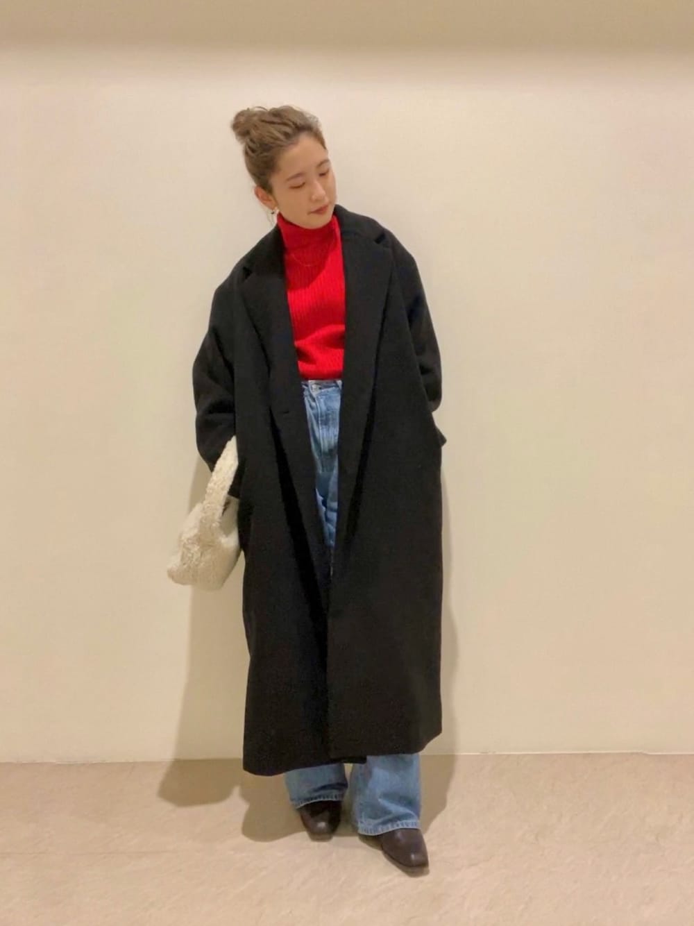 ※Instagram(@suzuka_akimoto_)リール詳細! 〈冬のチェスターコートコーデ❤️〉 【コート】・たっぷりとしたボリューム感で、厚手のニットも着込める◎・155cmの私で、Sサイズ着用。Mサイズだとギリギリですが、引きずりません🙆🏽♀️ 【ニット】・チクチクしにくく、肌触りが気持ち良い♡・フィット感はありながらも、体のラインがしっかりでるわけではないので、一枚でも着やすい。 【デニム】・オーガニックコットンで柔らかく、デニムなのにデニムじゃないような履き心地!・例えるなら…パジャマを履いているような履き心地👖・155cmの私だとフラットシューズでは引きずる長さ→5cm程のヒールや少しソールのあるシューズなら安心◎