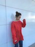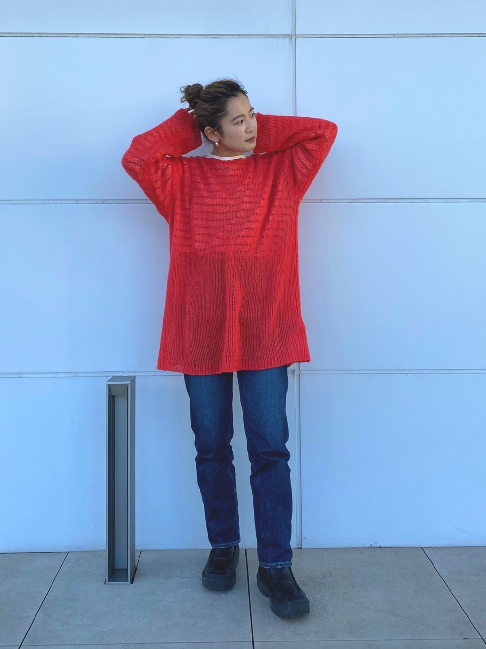 〈春を先取り♡オレンジニットコーデ🍊〉 【ニット】・かなりゆったりとしたサイジングで、ヒップはしっかり隠れ、155cmの私で膝上約10cm程までくる長さ。・重たいニットが苦手な私でも愛用してる薄軽ニット。・肩にかけて差し色として使っても◎ 【カットソー】・カジュアルな印象ですが、ボートネックデザインでデコルテ部分に抜けが出て、ラフに着ていただけます💗・長さは155cmでヒップが隠れるくらいです。