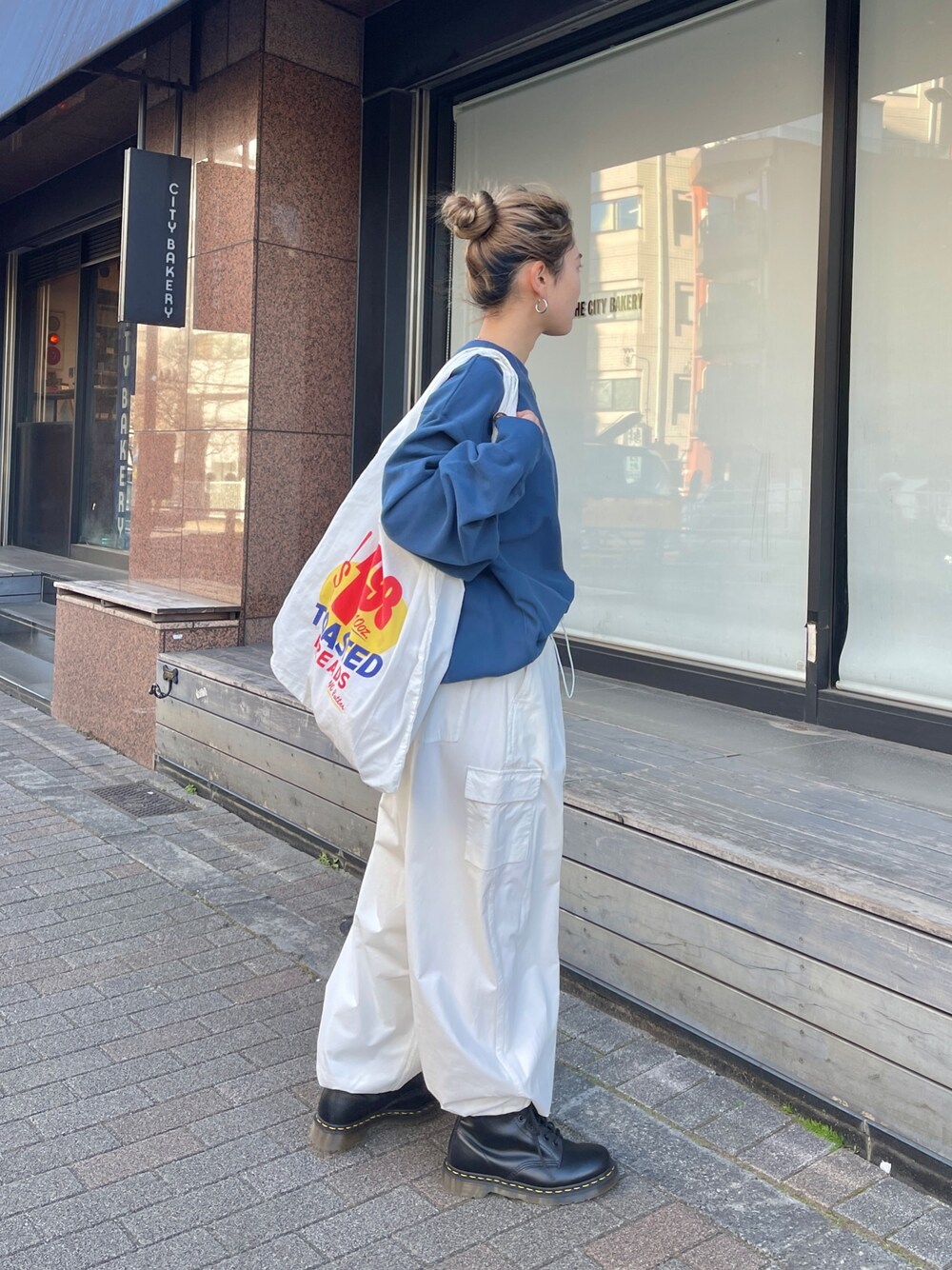 〈ちょっとそこまで♪な楽チンコーデ〉 【スウェット】・メンズライクなビッグサイジングのスウェット。・たぽっとしたシルエットがかわいく、古着のような一枚! 【パンツ】・ボリューム感たっぷりで毎年大人気のミリタリーパンツがサラッと素材で登場♡・履き心地軽やかでノンストレス!・155cmでドロストを絞って調節してます🙆🏽♀️ 【バッグ】・海外のショップバックのようなデザインがかわいいポイント♡ ・Ungid店舗にご来店の際にエコBAGをご持参頂くと、SALEアイテム以外が、ご購入のお会計から5%OFFに!