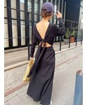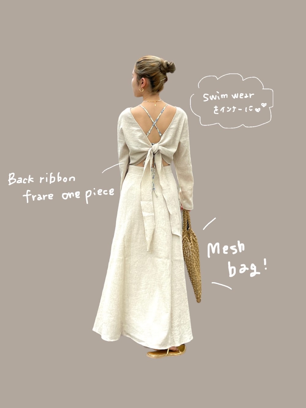 〈夏のヘルシーワンピコーデ🕊〉 【ワンピース】・大胆な背中あきデザインが他にない♡・3つの結び方で、雰囲気を変えていただけます! 【バッグ】ペーパー素材で編んだハンドバッグ。・中に巾着袋を付属しているので小物も入れて頂けます♪